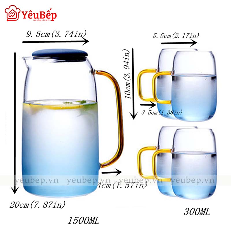 Bình trà : 20cm x 9,5cm Ly trà : 10cm x 5,5cm |