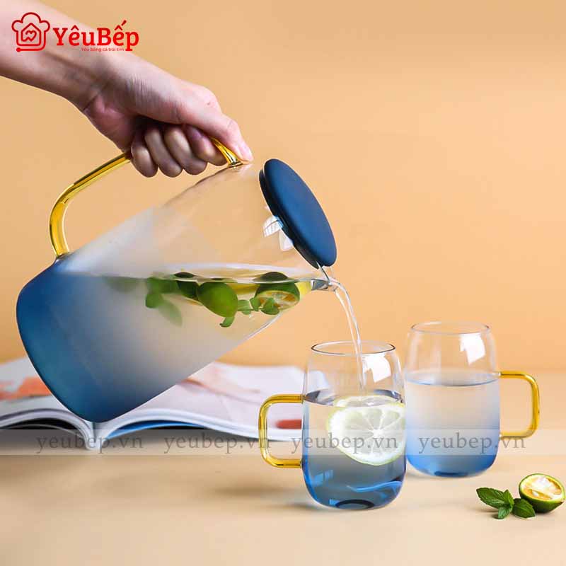 Ấm pha trà thuỷ tinh có quai cầm tay màu vàng sang trọng, quý tộc thích hợp với mọi không gian từ cổ điển đến hiện đại. Chất liệu thuỷ tinh độ co giãn tốt, chịu được nhiệt độ cao.