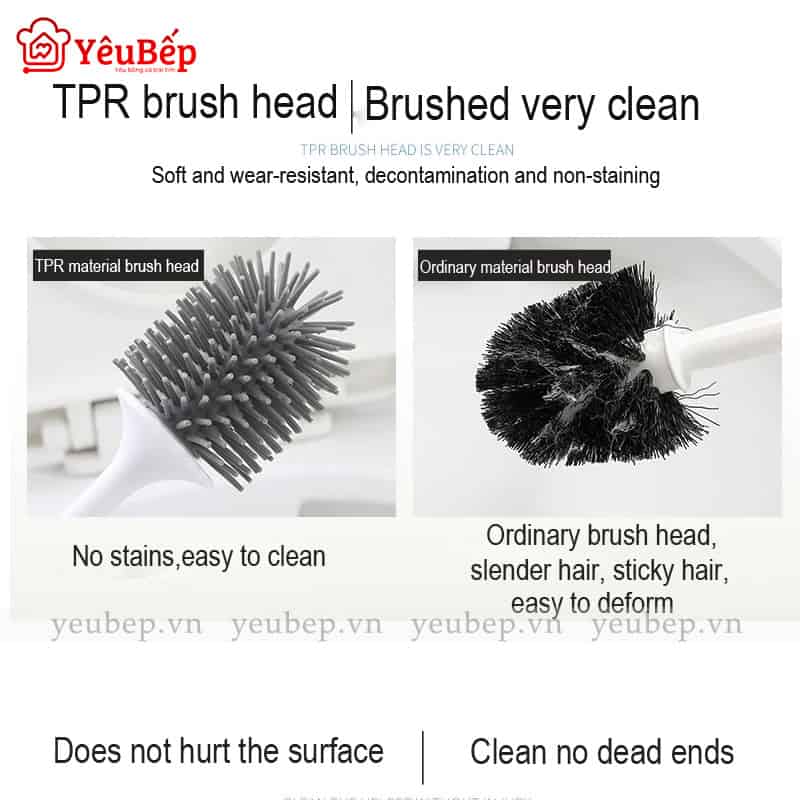 Hơn nữa, bàn chải với đầu lông silicon mềm mại, có thể quét 360 độ. Đảm bảo có thể giúp bạn lau chùi sạch sẽ những vị trí khuất nhất. Và đầu lông cũng không bị xơ, luôn đẹp và bền trong thời gian dài sử dụng.