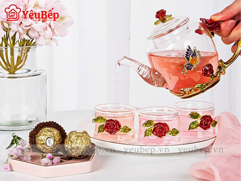 Ưu điểm nổi bật của bình trà họa tiết hoa hồng đỏ, hồng xanh cao cấp