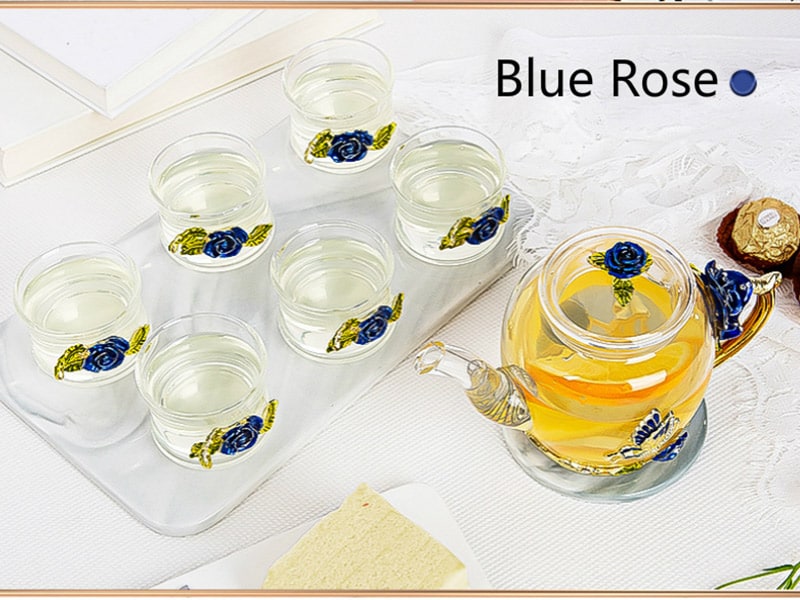 Đặc biệt, những bông hoa hồng xanh, hồng đỏ trang trí trên bình trà cũng giúp tôn lên vẻ đẹp lung linh của chúng khi sử dụng.