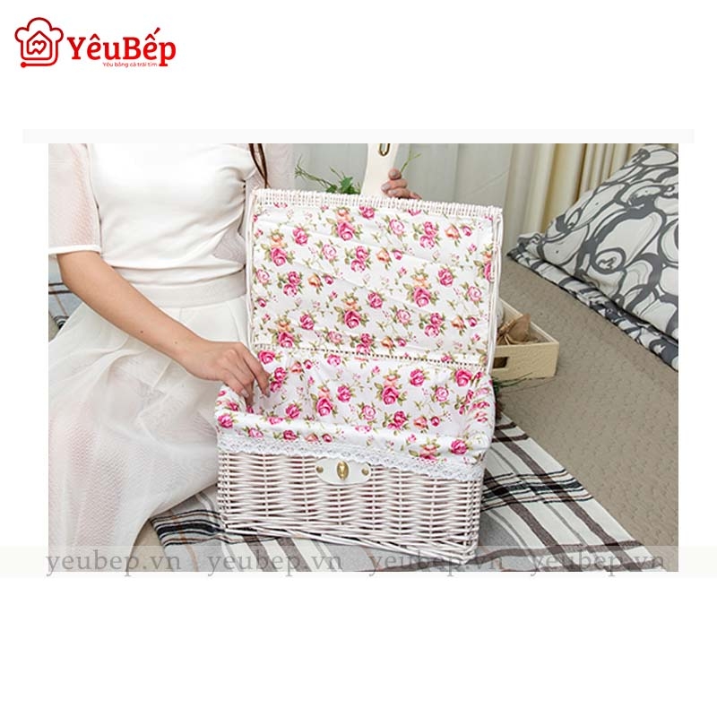 Hộp mây với thiết kế nắp đậy liền thân, quản quản đồ sạch sẽ, dễ dàng đóng mở