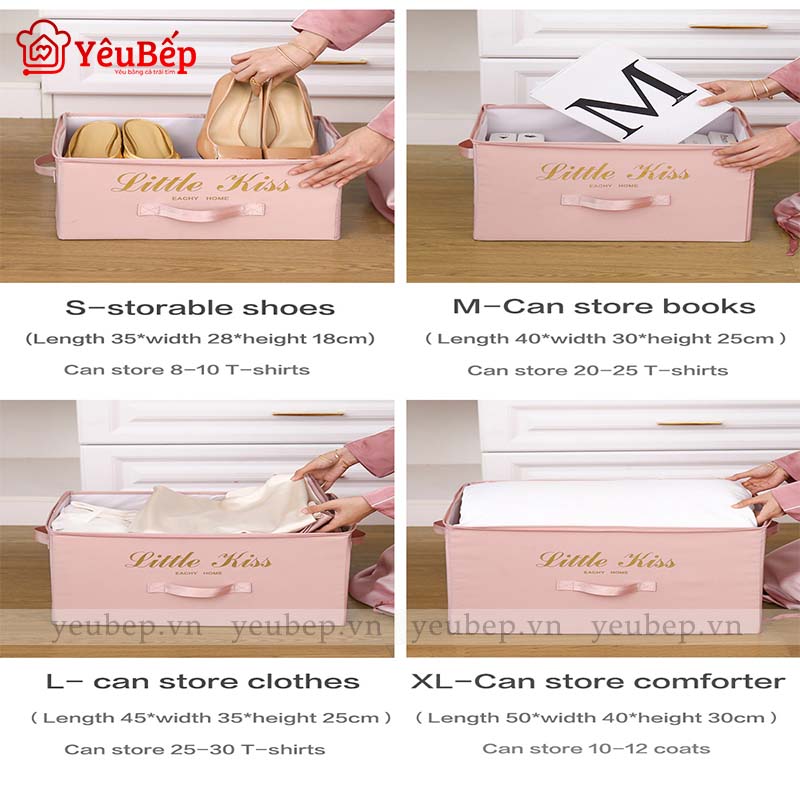 Hộp vải đựng đồ quần áo, chăn màn có nắp đậy , khóa kéo và quai cầm tay , giúp bạn có thể đựng được nhiều đồ khác nhau như : giày dép, quần áo, sách vở, đồ chơi một cách gọn gàng và tiết kiệm không gian.