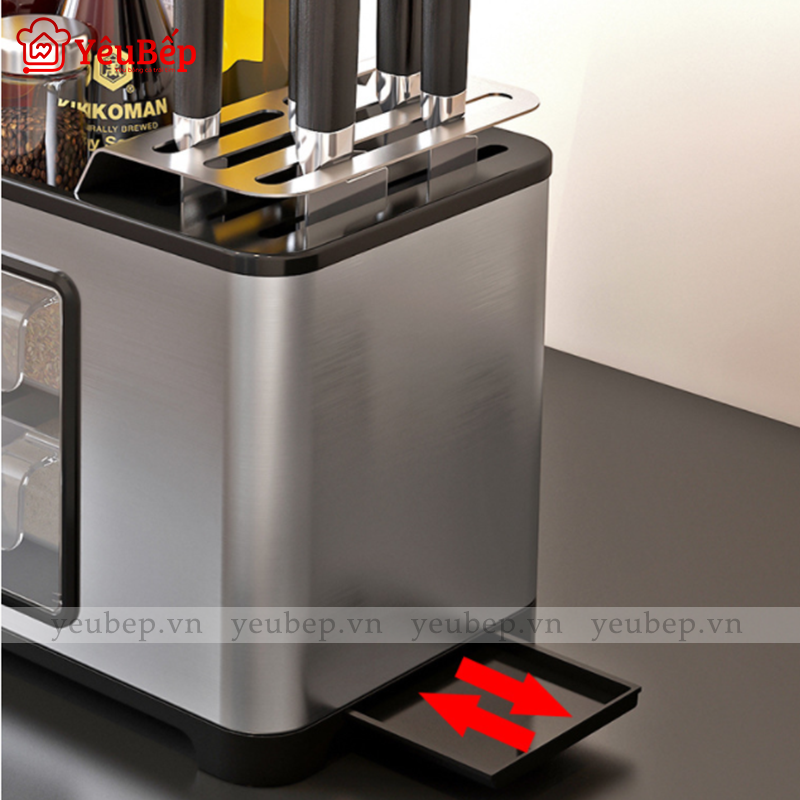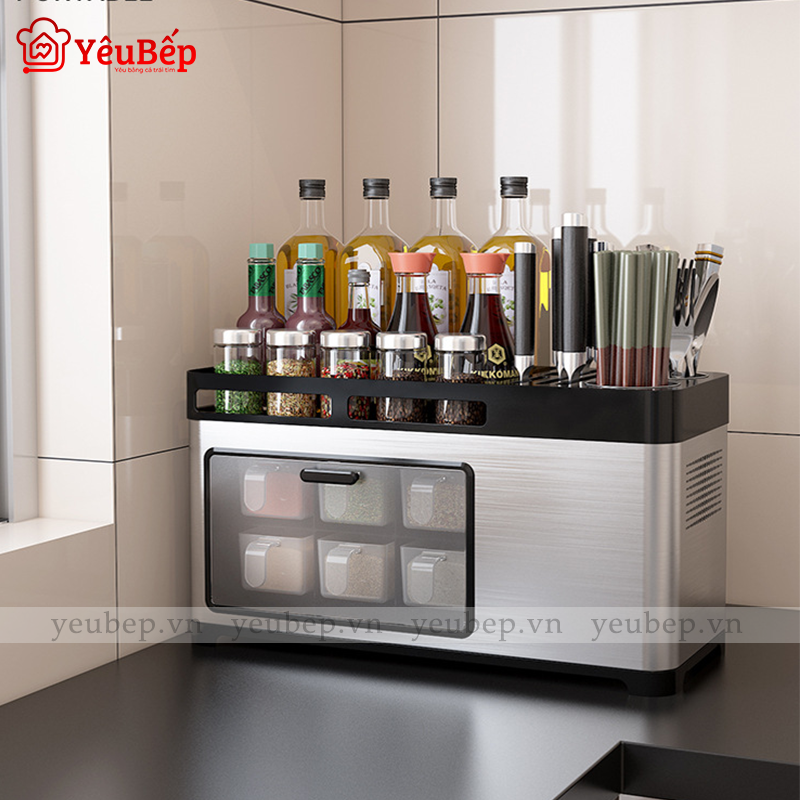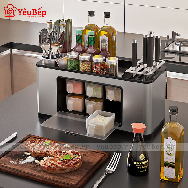 Kệ gia vị để bàn hiện nay là sản phẩm được các bà nội trợ lựa chọn và sử dụng nhiều nhất. Với thiết kế thông minh, kệ có 6 hộp đựng gia vị tích hợp với khay để dao đũa vô cùng tiện lợi Hãy cùng Yêu Bếp tìm hiểu rõ hơn về sản phẩm kệ gia vị để bàn thông minh nhé.