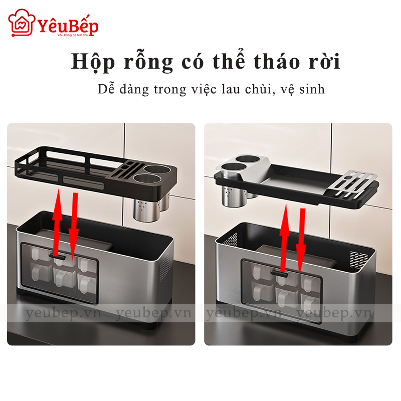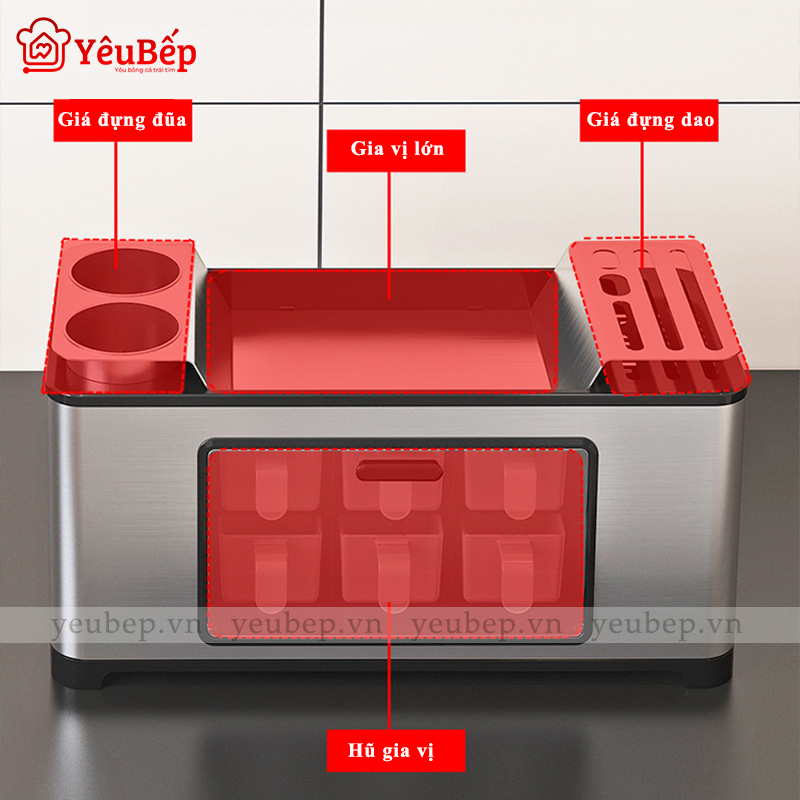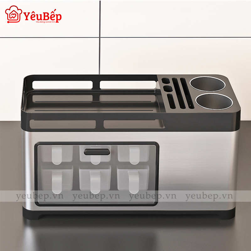 6 hộp đựng gia vị, 2 hộp đựng đũa và 1 khay đựng dao |