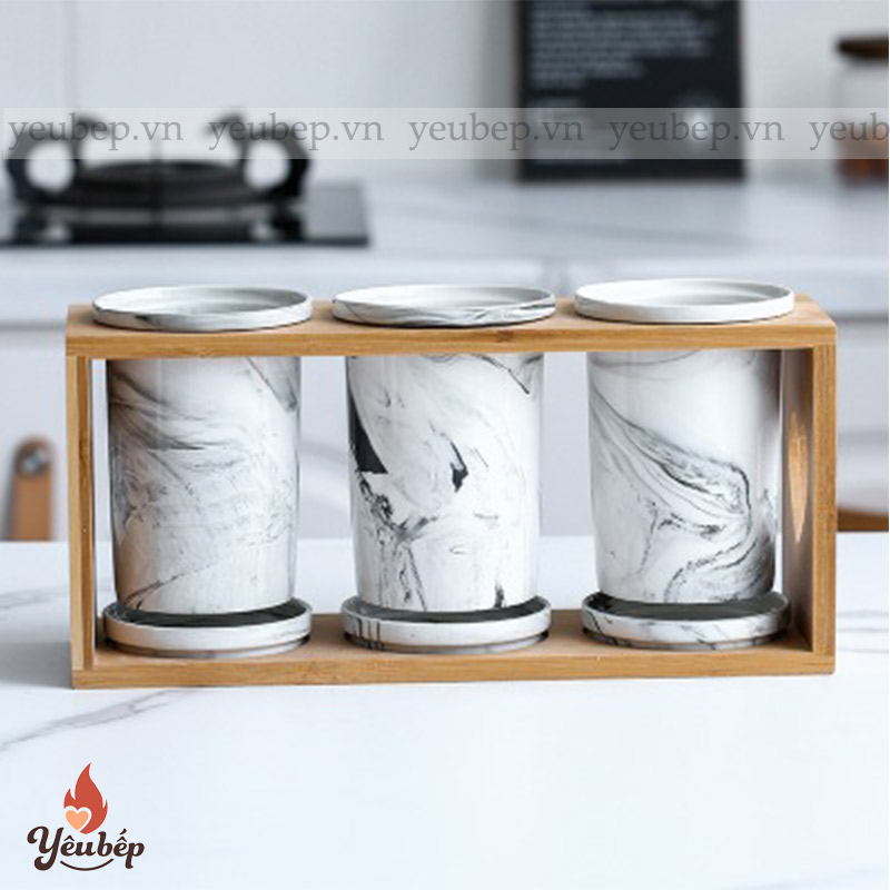Bộ ống đựng đũa muỗng bằng sứ với họa tiết vân đá sang trọng, cực kỳ phù hợp với những ngôi nhà, căn hộ, chung cư phong cách hiện đại.