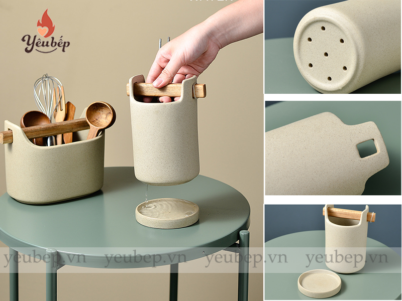 Ống đựng đũa muỗng bằng sứ có tay cầm để bàn |