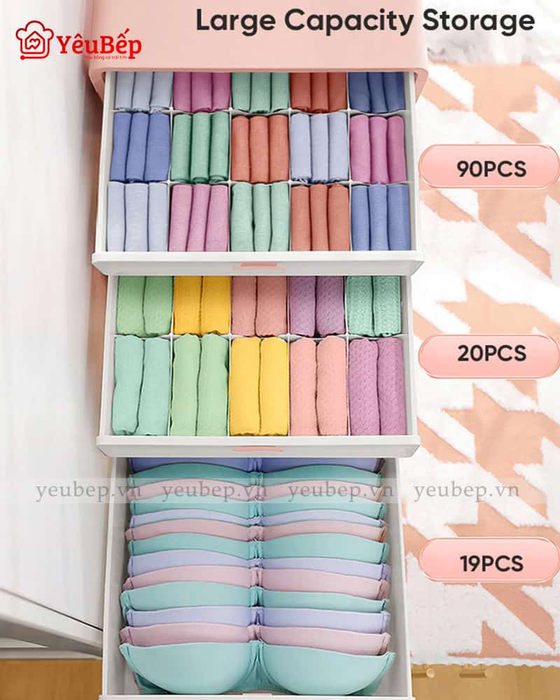 Cất giữ và bảo quản đồ lót, tất gọn gàng và chống bụi bẩn, mối mọt gây hại. |